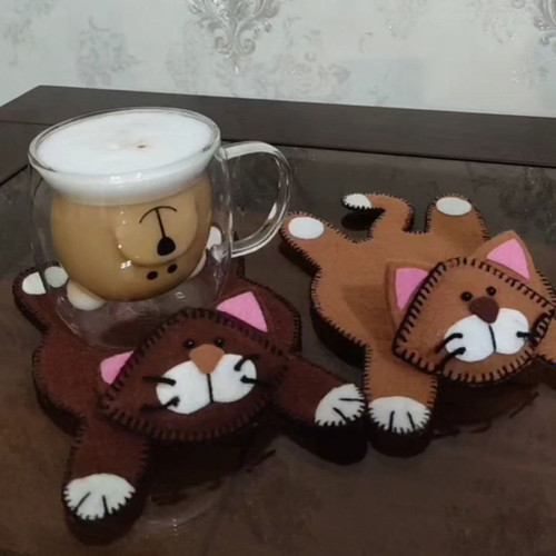 زیر لیوانی فانتزی نمدی طرح گربه کد n45