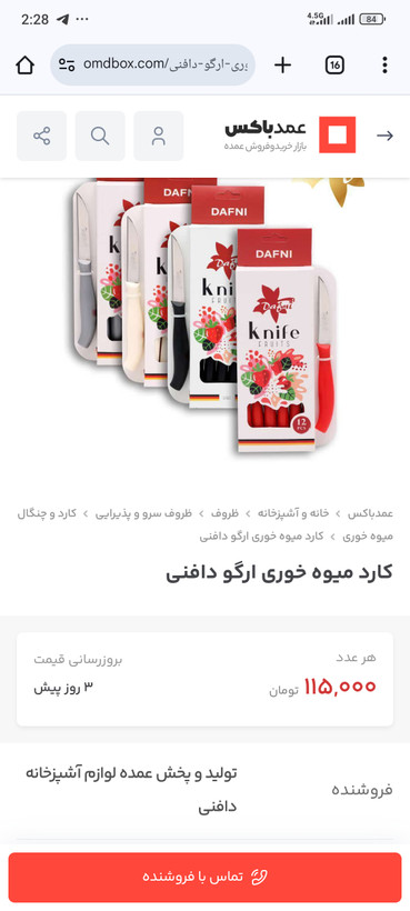 کارد میوه خوری دافنی عمده (بالای ۱۲عدد) کد om129
